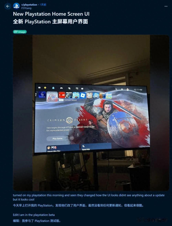 测试进展与完成度:接近量产的界面版本,从目前流出的截图与测试者反馈来看,这套新UI的完成度已经相当高,按钮响应、过渡动画、甚至季节性主题的兼容性都表现稳定,像是接近量产的版本,X平台用户Ben VideoTech最早发布了相关截图,随后另一位测试者提供了第二张实拍图,从角度与细节上都能够相互印证,尽管索尼官方尚未对此更新发表正式声明,但外界普遍推测这是一次小范围的灰度测试或分阶段逐步推送,预计在收集足够反馈并进行最终优化后,便会向全体PS5用户推送。