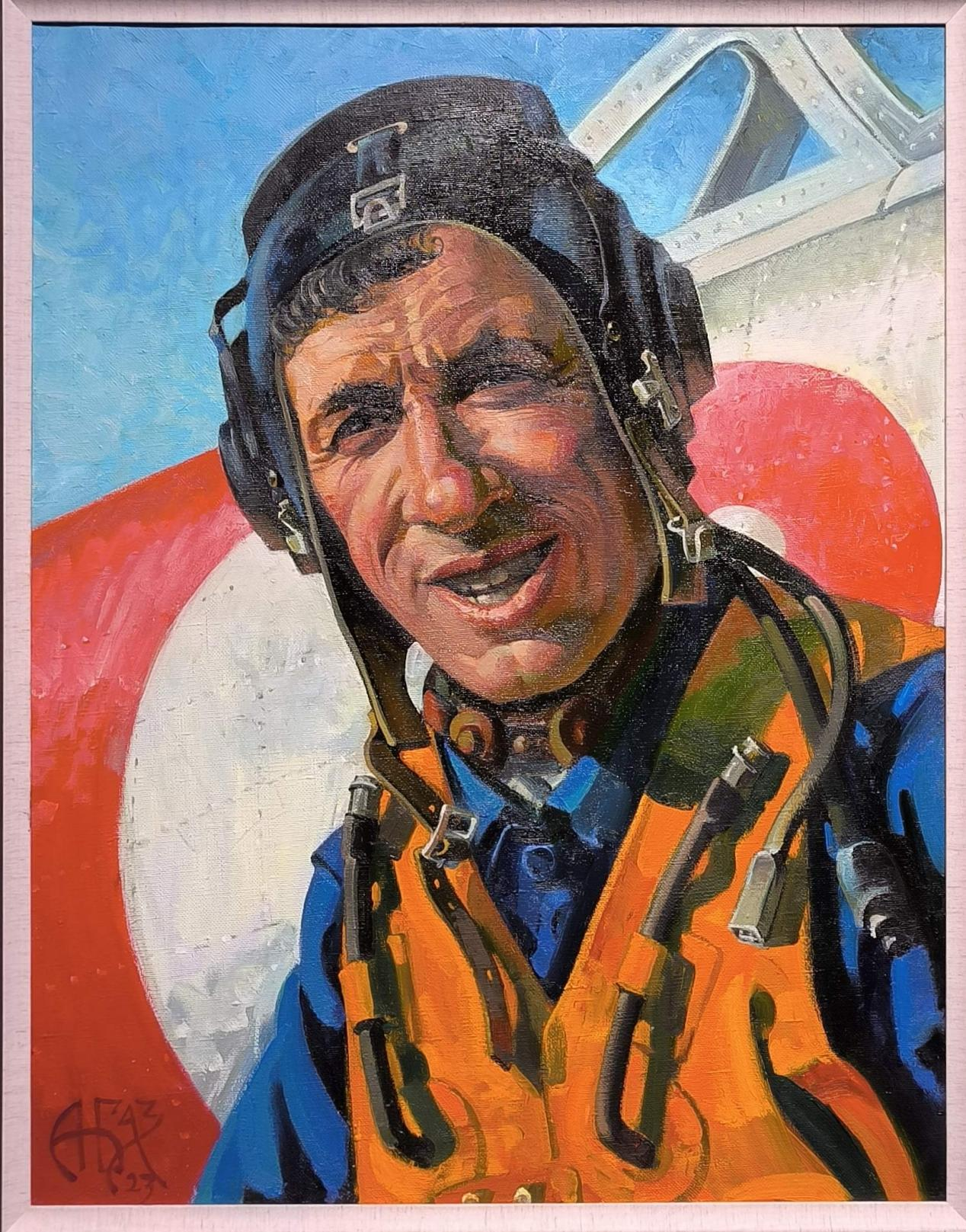 今天来看安德烈·巴赞诺夫展出的另一幅作品《苏联空军第611歼击航空兵团第1航空兵大队大队长尼古拉·巴扎诺夫中校肖像》。