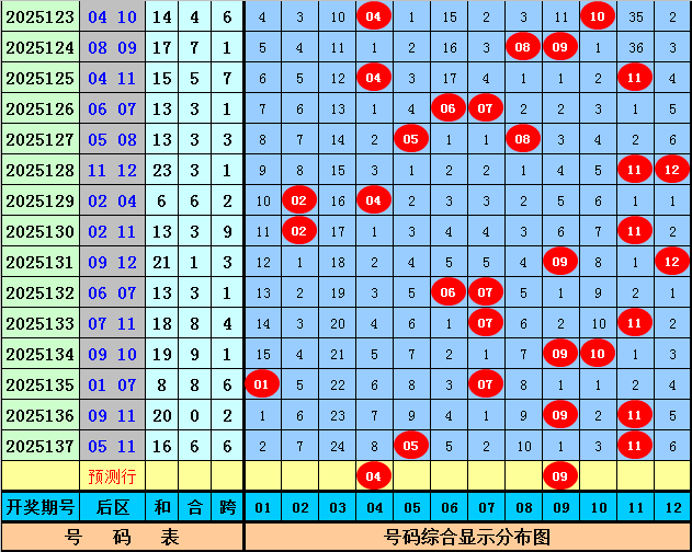 后区第一位:上期该位开出号码05,为遗漏9期的温码,前7期该位分别遗漏:6期、5期、0期、2期、15期、1期、9期,其中冷温热号码个数比为1:3:3,温码表现活跃,本期注意再出温码,参考号码04。