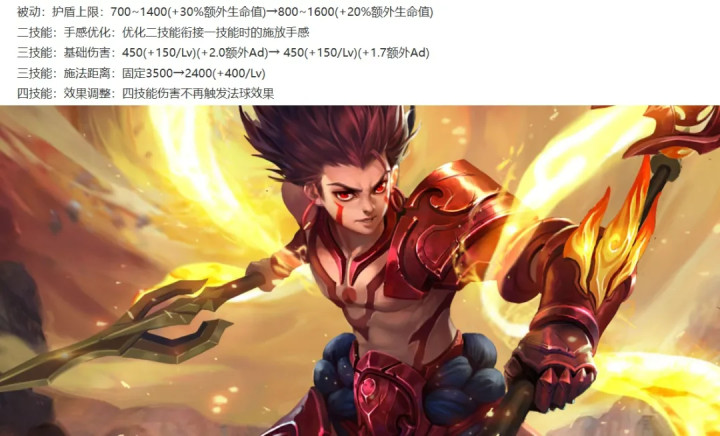哪吒削弱:被动护盾在前期变厚,在后期变薄,21连招手感更流畅,3技能的后期伤害降低,3技能的施法范围缩小,4技能不再触发法球效果。