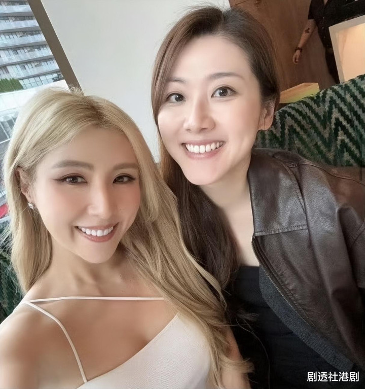 而作为邓佩仪好姐妹的谭嘉仪则是穿着白色小背心,她的一头长发染成了黄白色,看起来活力满满,二人合照的时候还不忘头贴头,就像是一对姐妹花。