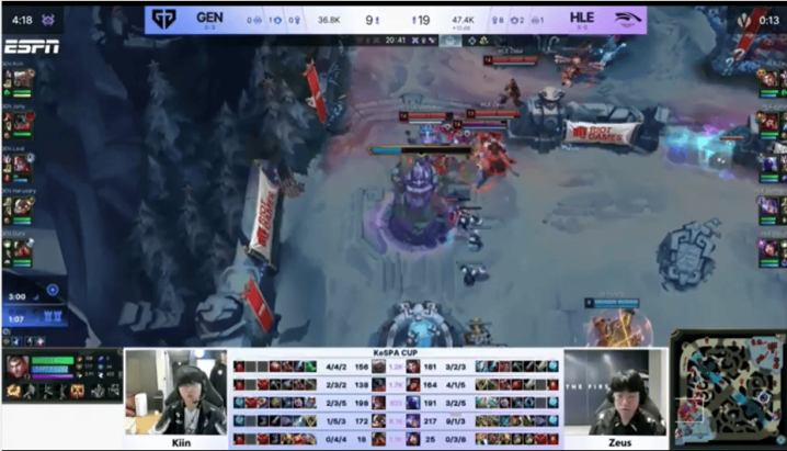 虎扑12月08日讯GEN蓝色方,HLE红色方