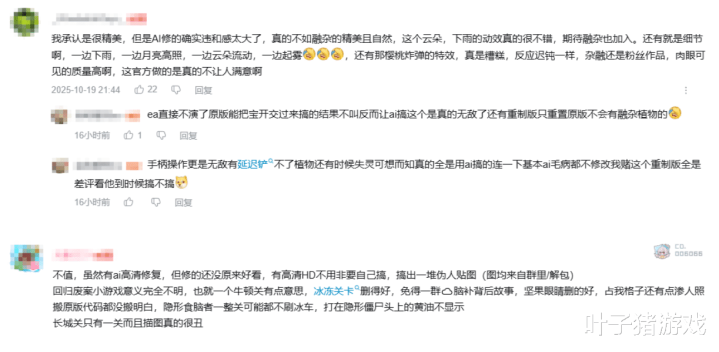 对此,网友觉得:“不值这个价格,我要安息模式我也不去找其他原版自己定游戏规则手搓一个? 其他的话,隐藏小游戏可以用原版搞出来,对战可以玩TV版代替,就剩个阴天模式是独有的,然后原版的PVZ才20多块钱,加了几个模式和一堆关卡就值快100了,EA明明可以抢这八十块差价的,非要整个重植版,它们真的我哭死”