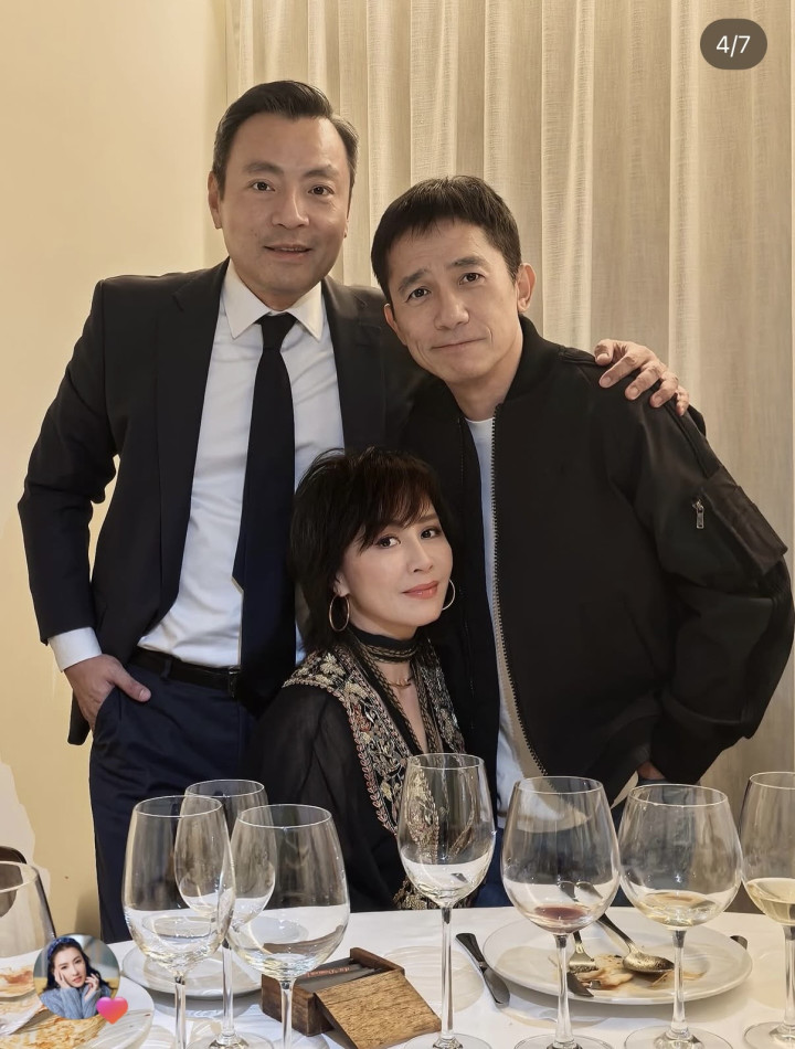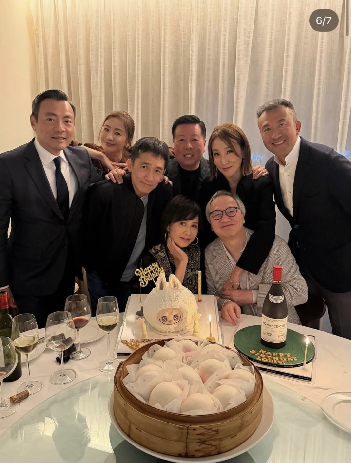从现场合照来看,众人关系都很好,合照的时候刘嘉玲与吴志诚坐在第一排,其他人站在后排,其中雷林静怡还单手搂着吴志诚,可见彼此相识已久。切蛋糕环节,刘嘉玲对着绽放烟花的Labubu蛋糕许愿,仪式感满满。除此之外,她还留下了不少的照片,包括自己拿着寿桃包的自拍照,另外还有梁朝伟出镜的夫妻合照。这张照片很特别,刘嘉玲一只手拿着寿桃包,一只手拿着手机自拍,梁朝伟也出镜,他拿着香槟,夫妻俩贴头自拍,这一幕很温馨,自然,没想到还被在场的友人抓拍了下来。